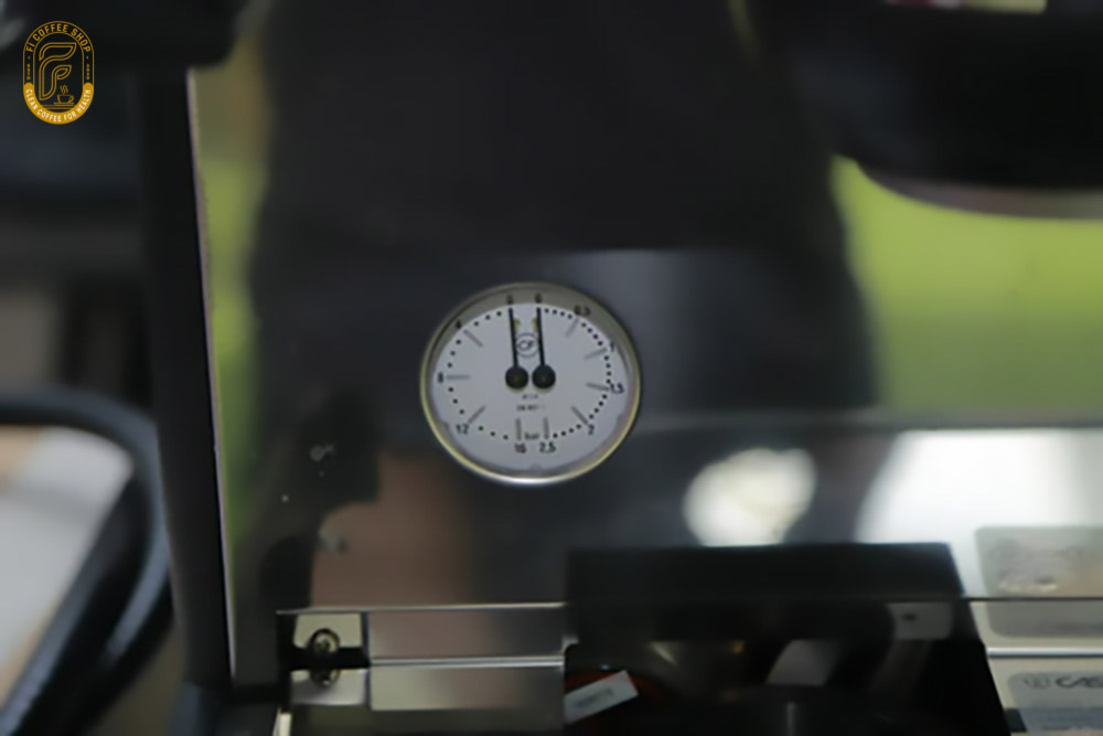 Bên phải hiển thị áp suất nồi hơi Kiểm tra nhiệt độ đã đủ để bắt đầu chiết xuất cà phê hay không.